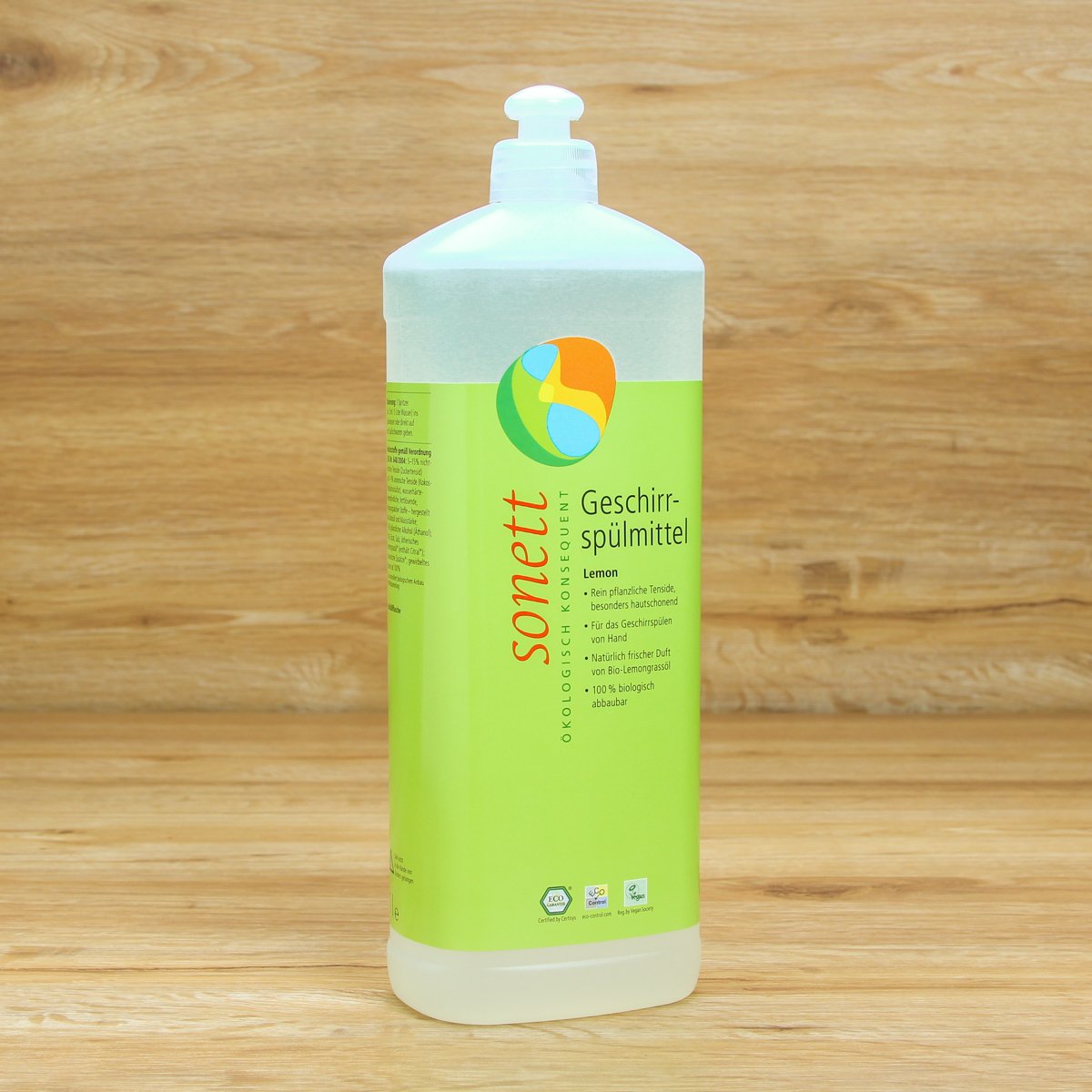 Rein pflanzliche Tenside, besonders hautschonend, für das Geschirrspülen von Hand, natürlich frischer Duft von Bio-Lemongrassöl, 100 % biologisch abbaubar,