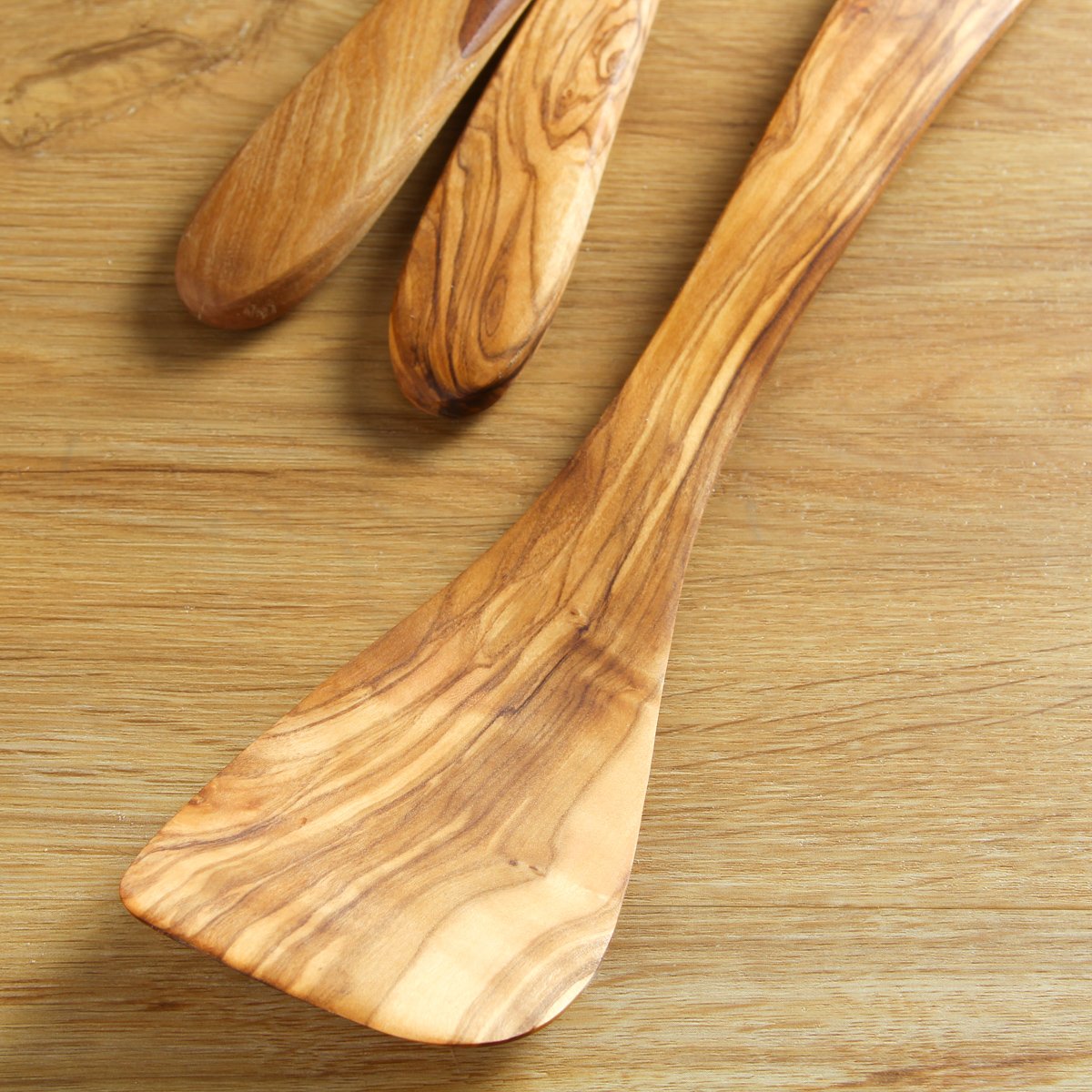 Holz ist einfach das beste Material für Küchenhelfer. Dieser Pfannenwender aus geöltem Olivenholz rührt alles in Töpfen und Schüsseln, ob heiß oder kalt, süß, sauer oder herzhaft. Davon kann man einfach nie genug haben. Durch die gebogene Form liegt er angenehm in der Hand die Olivenholz-Maserung ist bereits ein optischer Genuss.
