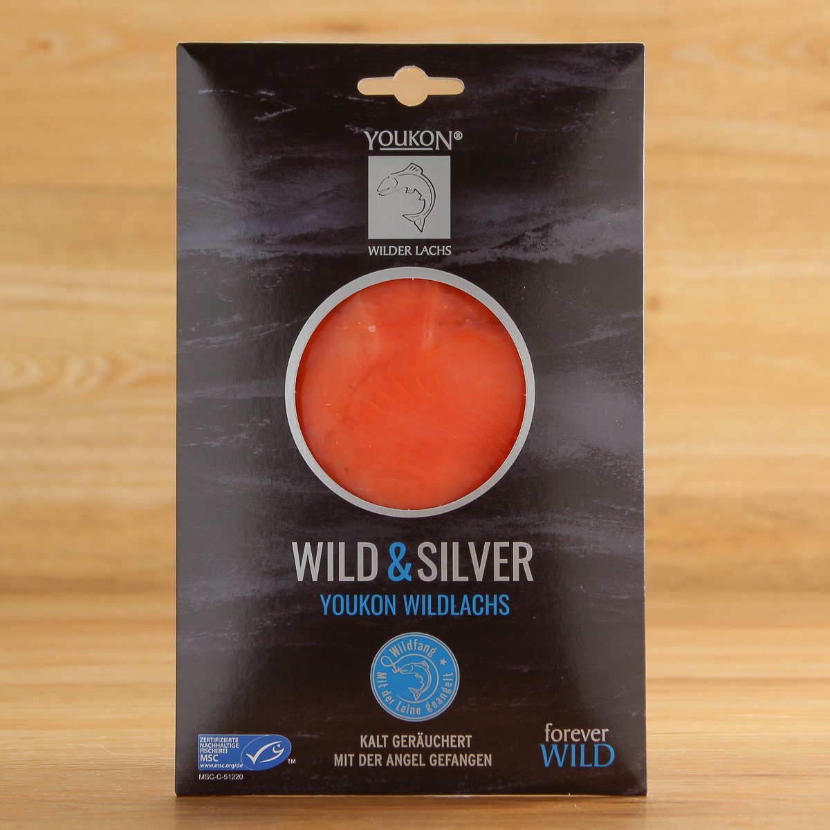 Youkon Wild & Silver Wildlachs (Oncorhynchus kisutch) 75 g, kalt geräüchert und mit der Angel gefangen, MSC zertifiziert