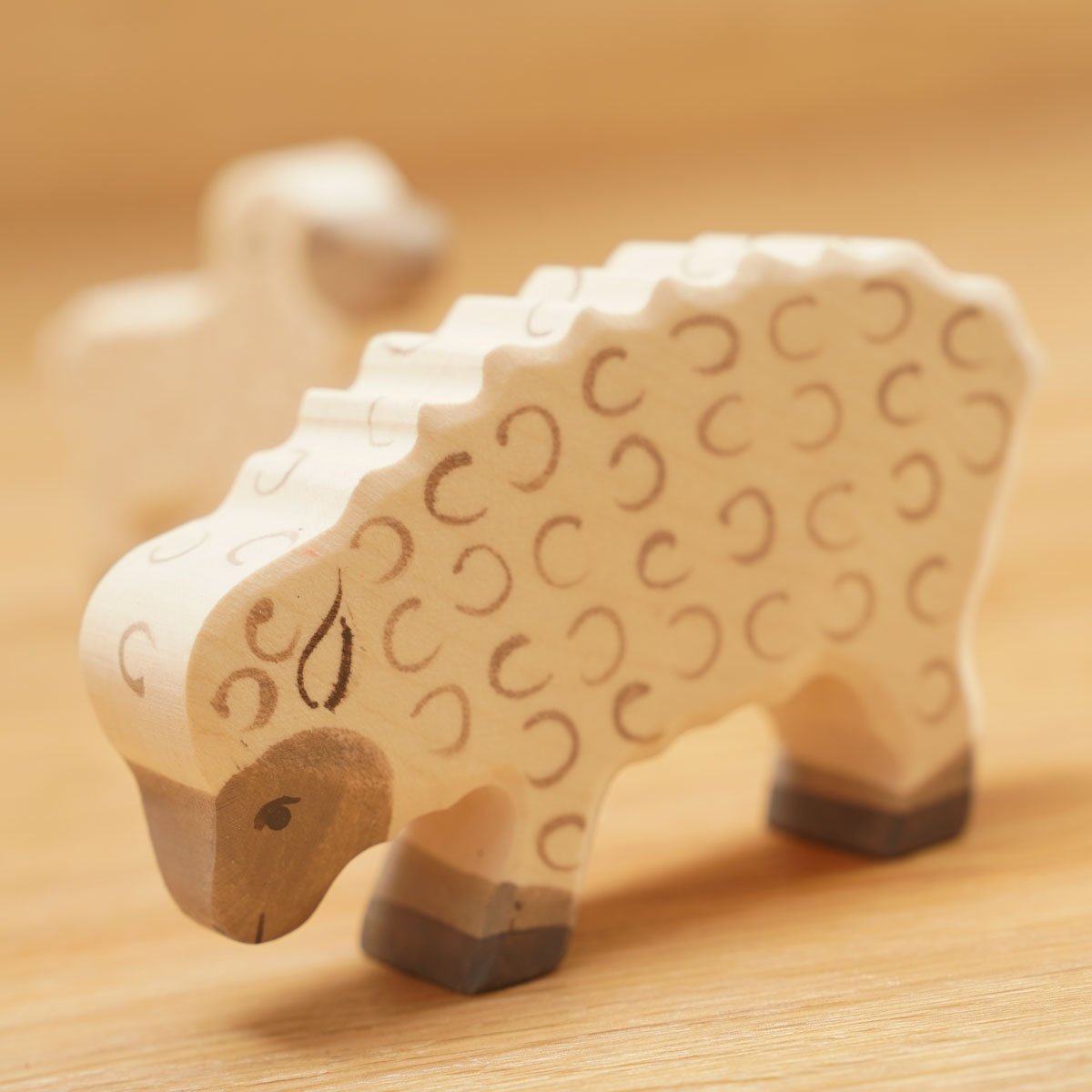Holztier Schaf, fressend