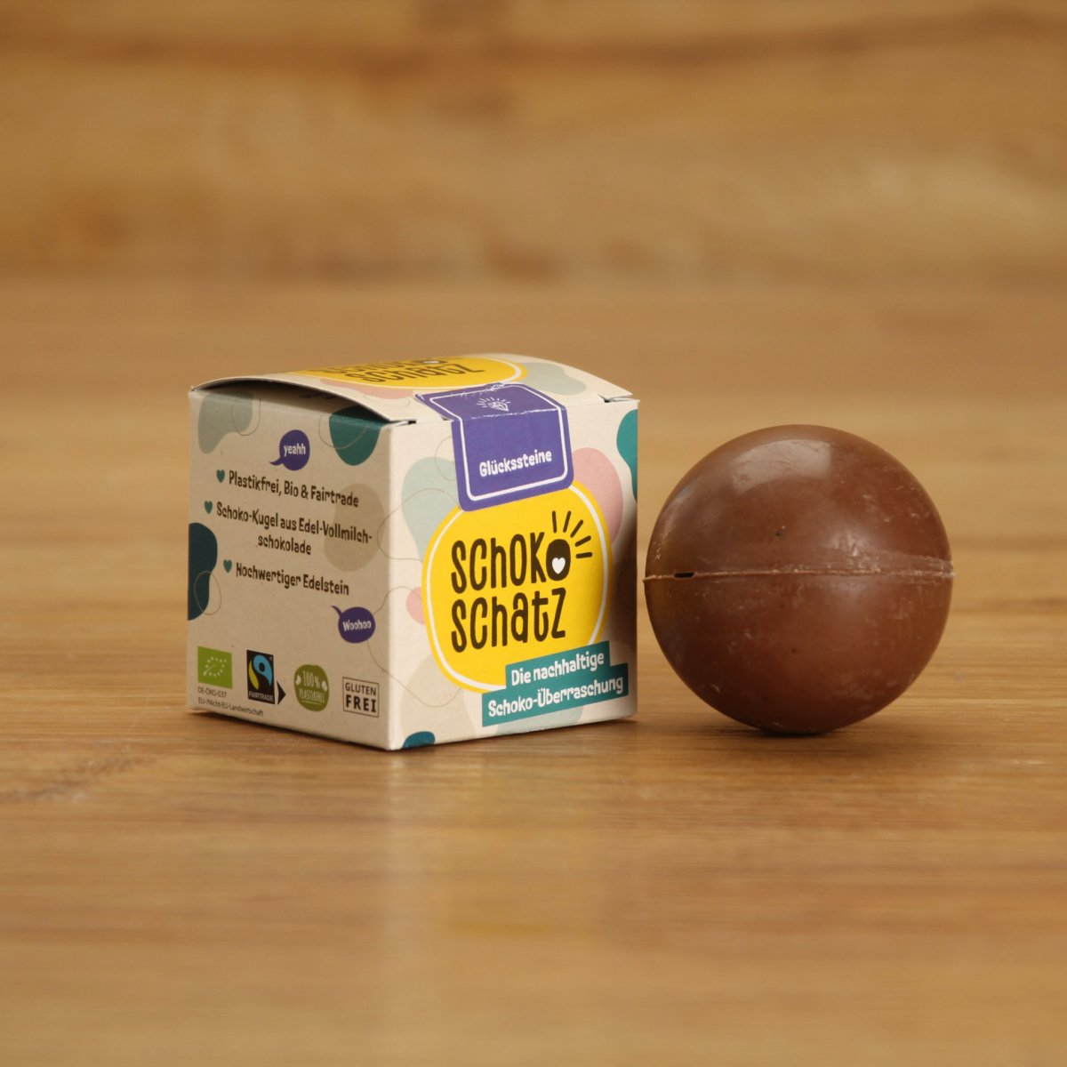 Die nachhaltigste (Kinder-) Überraschung ever. Feinste Edel-Vollmichschokolade trifft hochwertige Edelsteine. Diese Schokoladen-Überraschung lässt nicht nur Kinderaugen leuchten.
