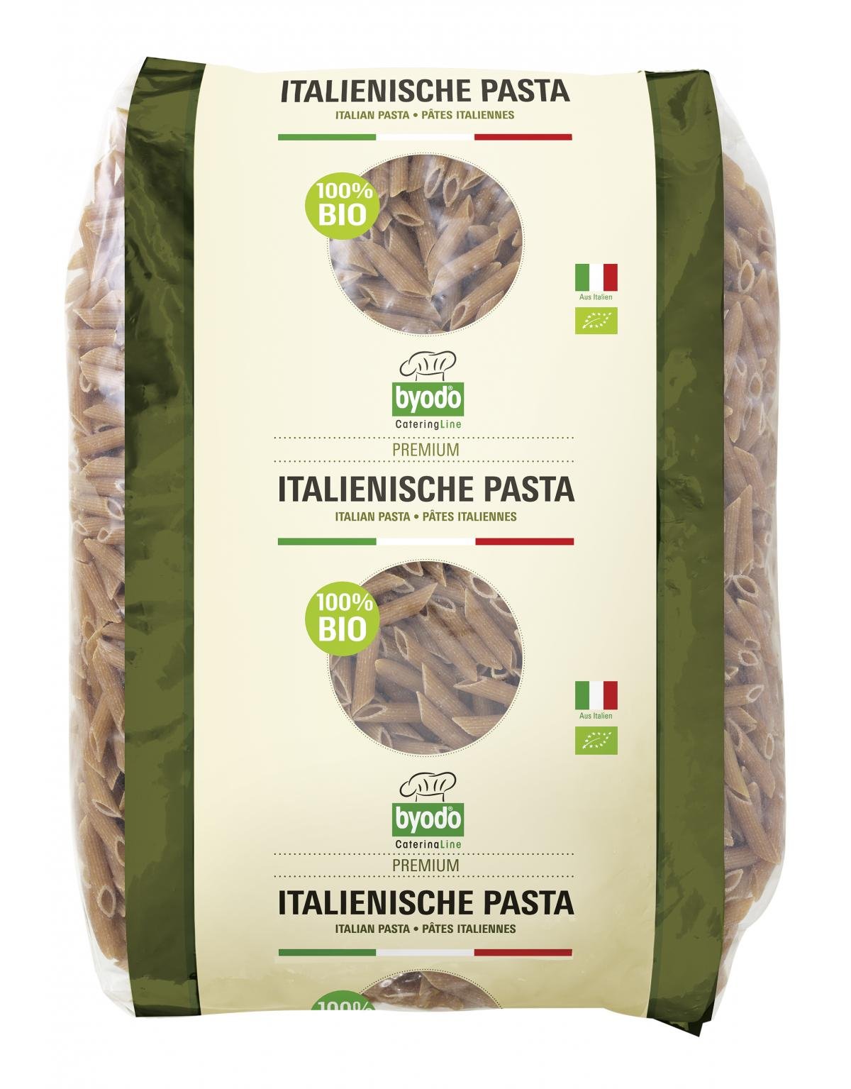 Die Vollkorn Penne von Byodo werden aus feinstem italienischen Bio-Hartweizengrieß hergestellt. Die Röhrennudeln haben einen schönen Biss.