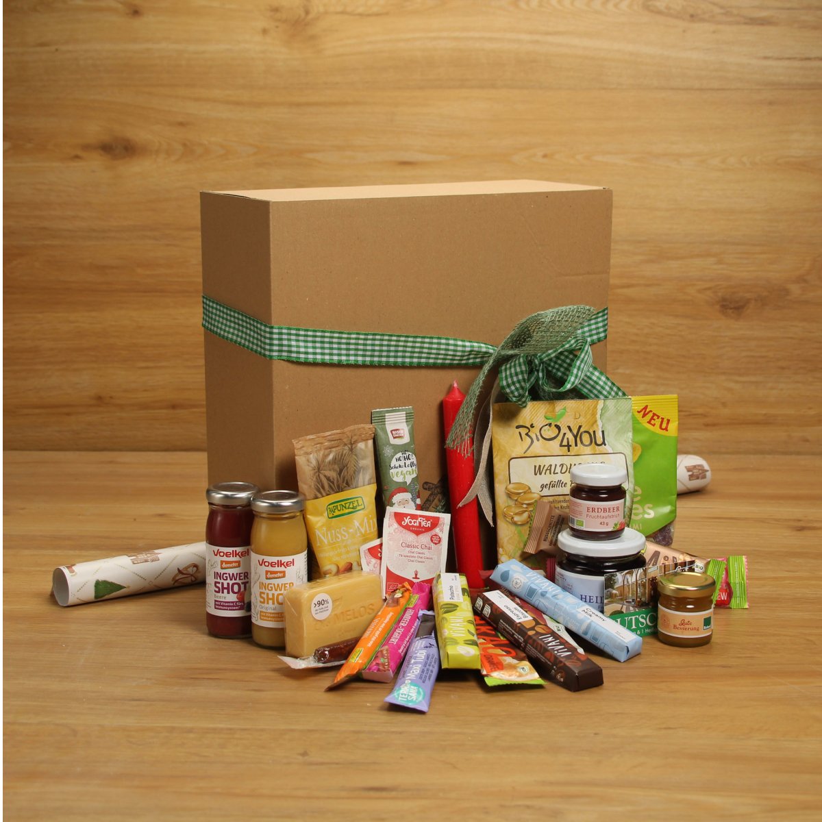 24 hochwertige Leckereien und kleine Präsente aus dem Sortiment, liebevoll in Handarbeit verpackt. Die mit Wulksfelder Stroh gefüllte Kiste wird dabei direkt genutzt, um die einzelnen Geschenke zu präsentieren.